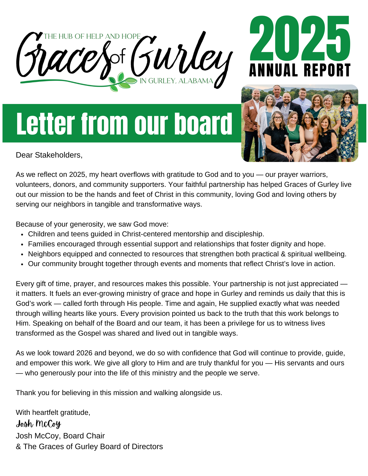 Join us in celebrating the gifts God provided in 2025 by reading our annual report. And, because we can’t say it enough, THANK YOU to everyone who partners with us in God’s work in Gurley!
